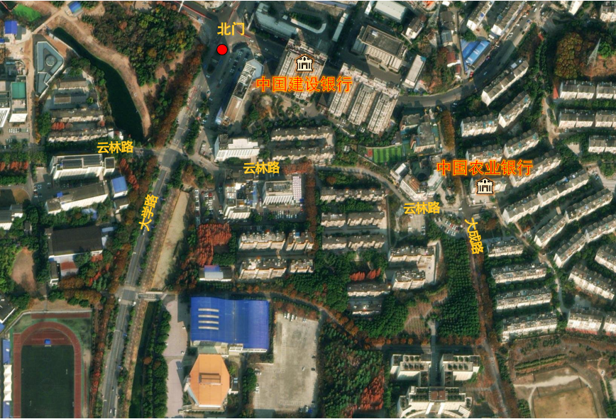 在大学路与黄河路交汇处设有建设银行和24小时自助银行(ATM),在云林路与大成路交汇处设有中国农业银行和中国农业银行ATM。